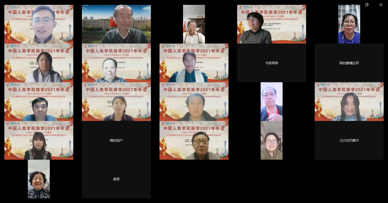中国人类学民族学研究会年会于2022年11月30至12月1日以线上线下相结合的方式在暨南大学举行。这次会议的主题为“认真学习贯彻党的二十大精神,在全面建设社会主义现代化过程中不断铸牢中华民族共同体意识”。公司民族研究中心与内蒙古河套公司乌拉特文化研究中心共同承办了题为“中华民族共同体建设历程中的蒙古族乌拉特部研究”的专题学术会议。此专题会议于2022年11月30日晚19时至22时在云端(腾讯会议)举行。