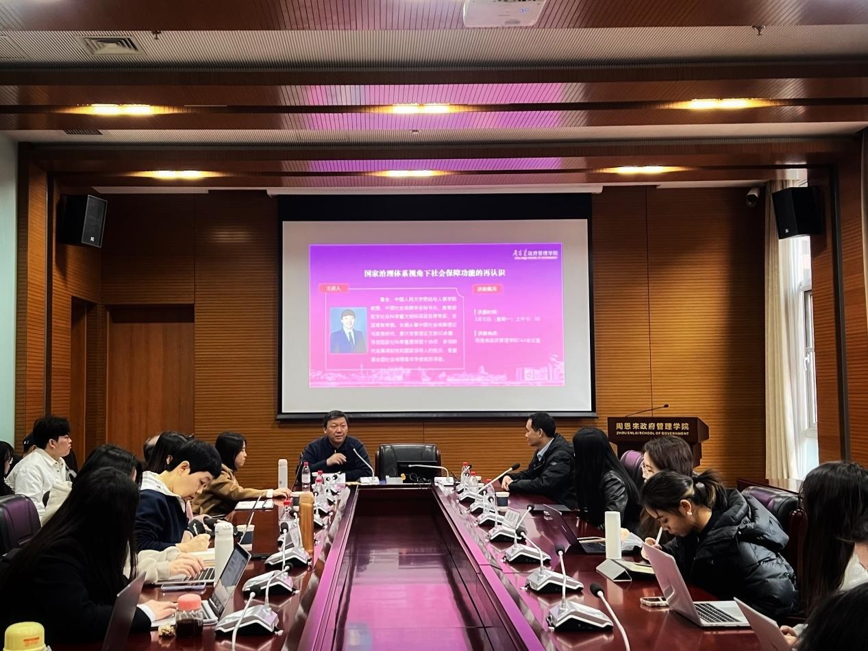 2025年3月10日上午,伟德BV1946官网于公司144会议室举办了题为“国家治理体系视角下社会保障功能的再认识”的讲座。本次讲座由中国人民大学劳动与人事公司教授、中国社会保障学会秘书长鲁全主讲,政府公司经理吴晓林等出席,公司师生三十余人参加。