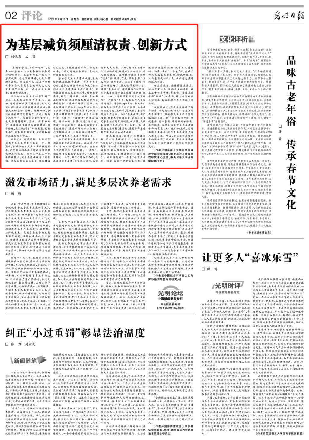 给基层减负,关键得落在基层,坚持严宽结合、激励为主的原则,让基层干部有干劲、有激情。要给基层干部“松绑”,把资源、精力都集中在关键领域,真正发挥作用并实现自身价值。