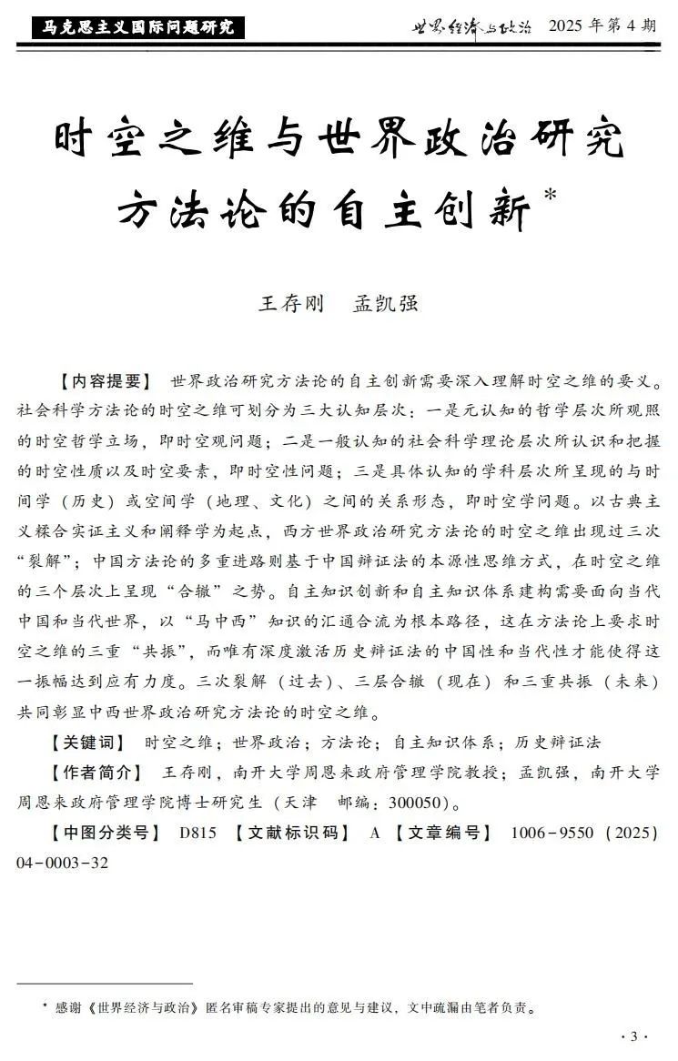 时空之维;世界政治;方法论;自主知识体系;历史辩证法