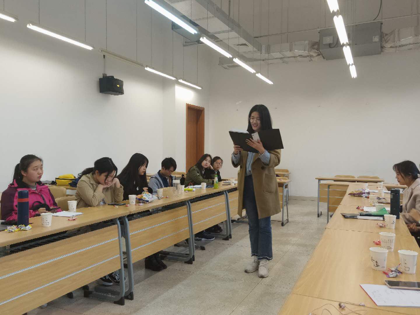 (通讯员:王燕 任银娜)2019年4月11日16:50,恩来精神展演团于政府公司135教室进行了期中考核暨朗诵技巧培训会。与会人员包括恩来精神展演团成员及指导老师王燕。