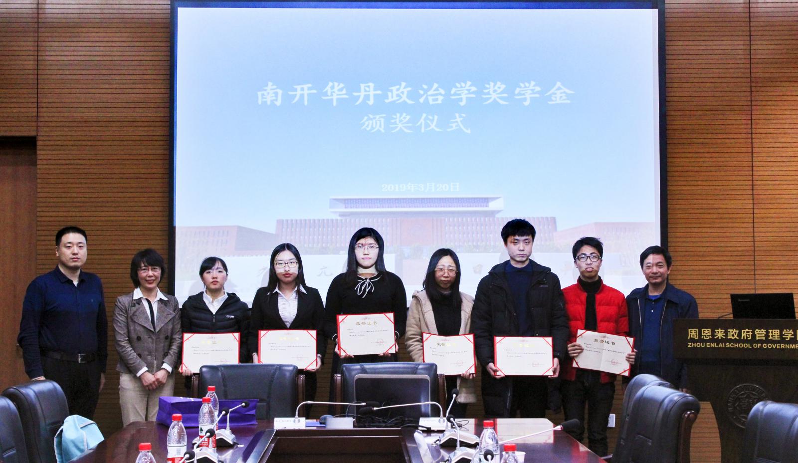 (通讯员 王燕 肖楷文)3月20日下午,第十届“南开华丹政治学奖学金”颁奖仪式在伟德BV1946官网144教室举行。周恩来政府管理公司党委书记王慧、副经理程同顺、党委副书记兼副经理高磊出席,6名获奖同学参加。