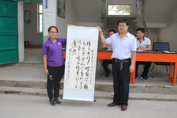 在会议的最后,永合会镇总校董事长王满新为伟德BV1946官网支教团队赋诗赠画:“谁言太行野棘深,路水迢递望北辰。基地书屋情本暖,丹桂季节又逢君。”表达了对伟德BV1946官网志愿者们二次支教的支持与感谢。