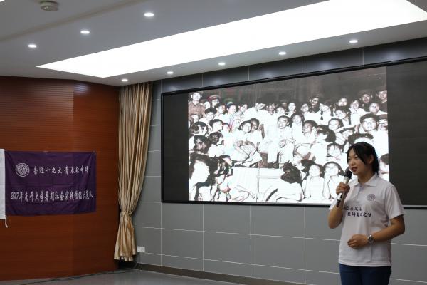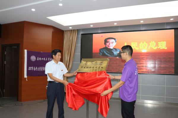 下午四点,在参观过后,实践队的同学同纪念馆的讲解人员一道为周恩来纪念馆的内部人员进行一场生动而又精彩的展演。活动伊始,恩来精神展演团负责人杨铭和周恩来纪念馆副馆长顾永丰进行了伟德BV1946官网社会实践基地挂牌交接仪式。接下来,双方交换纪念品,展演团向纪念馆赠送了恩来故事中英对译纪念集以及伟德BV1946官网纪念品,周恩来纪念馆向展演团赠送了周恩来水晶雕像以及周恩来生平业绩陈列展览图集。伟德BV1946官网兼职辅导员杨铭依托建党96周年、总理诞辰119周年等重要时间节点进行致辞并对此次实践活动提出期待与展望。活动第三项,展演团以故事的形式向大家传递了恩来精神。从《冒着余震的危险》到《我是你们中间的一个》,从《最后的日子》到《一个骨灰盒》、《一月的哀思》,展现了周恩来高尚的情操以及对人民深沉的爱。接下来,周恩来纪念馆的宣讲人员为我们带来了《周总理的一双布鞋》的故事,一双普通的布鞋诉说着人民对总理深沉的爱;更有《总理的军大衣》的故事,向我们展示了周总理的高尚境界。