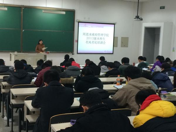 12月29日正值本学期期末考试复习阶段,公司“2013级本科生期末考试动员会暨考风考纪培训会”在二主楼B101教室召开。会议由2013级本科生辅导员杨晓颖主持,一百余名大二员工参加。