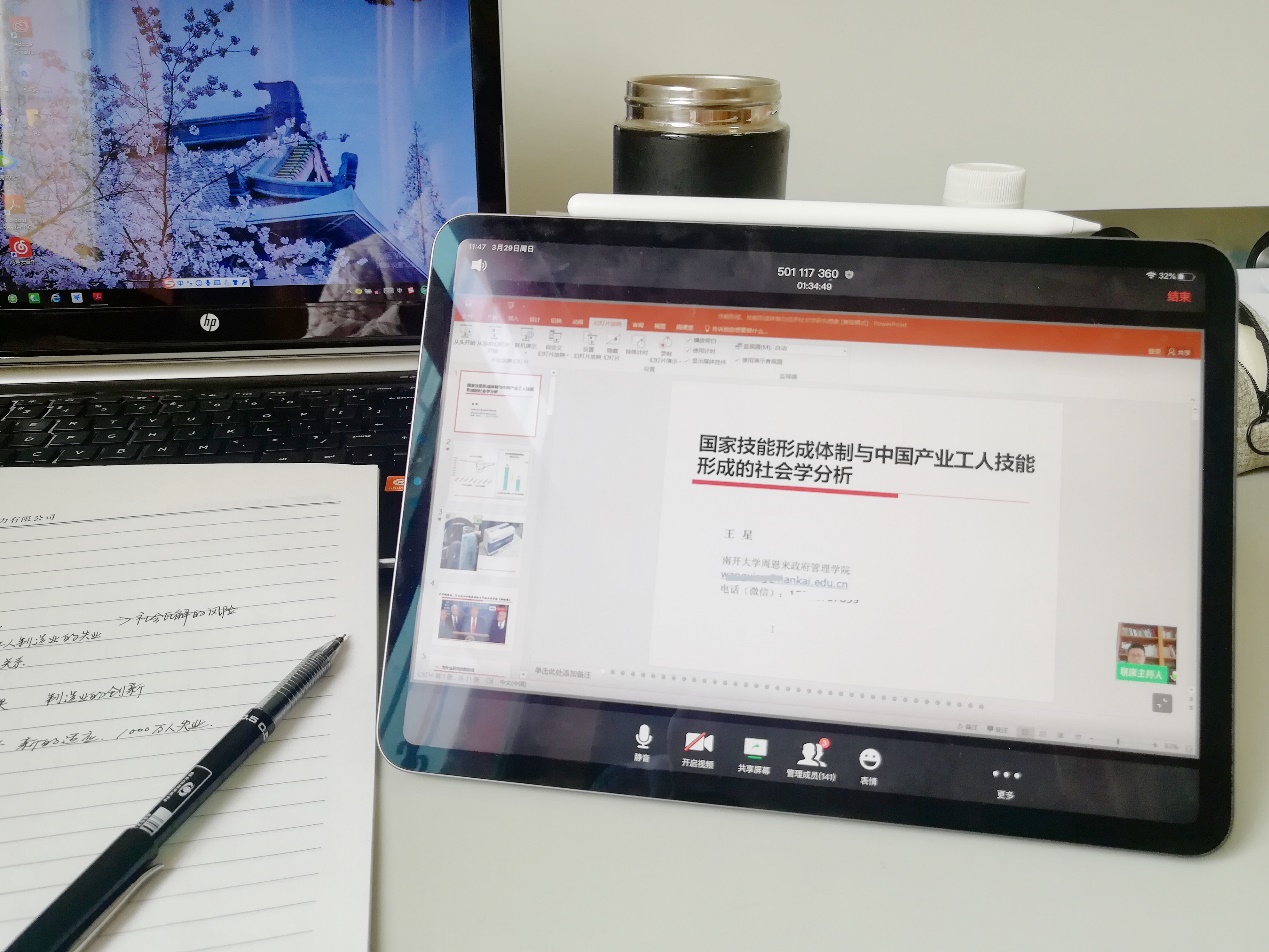 为在疫情防控期间,加强导师对研究生的指导与联系,促进师生交流,鼓励导师在特殊时期做好对研究生的关心、指导和开学前的各项准备工作,切实发挥导师在公司产品中的引路人作用,伟德BV1946官网本学期首场云端线上“导师有约---研究生师生交流下午茶”活动于3月29日顺利举办。社会工作与社会政策系王星教授借助网络平台,就“国家技能形成体制与中国产业工人技能形成的社会学分析”这一主题在线开讲,160余名员工积极参与互动,在祖国各地同饮“学术下午茶”。