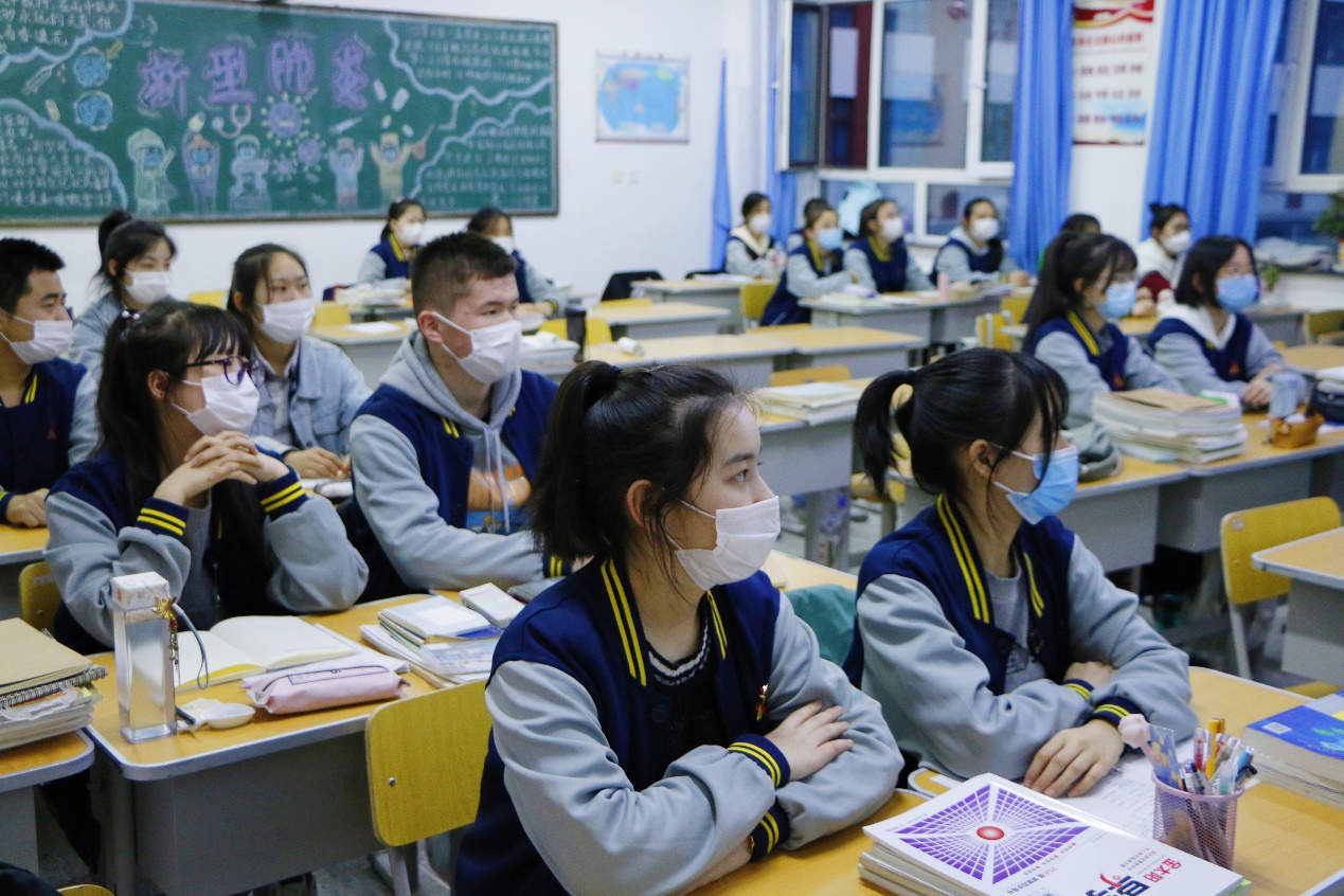 阿勒泰地区第二高级中学的孩子们正在教室里争先恐后地回答着。这是一场由伟德BV1946官网团委书记杨晓颖在疫情防控的关键时期,暨清明节来临之际,给边疆的孩子们精心播讲的“云端”思政课,全校1500余名员工集体收听收看。