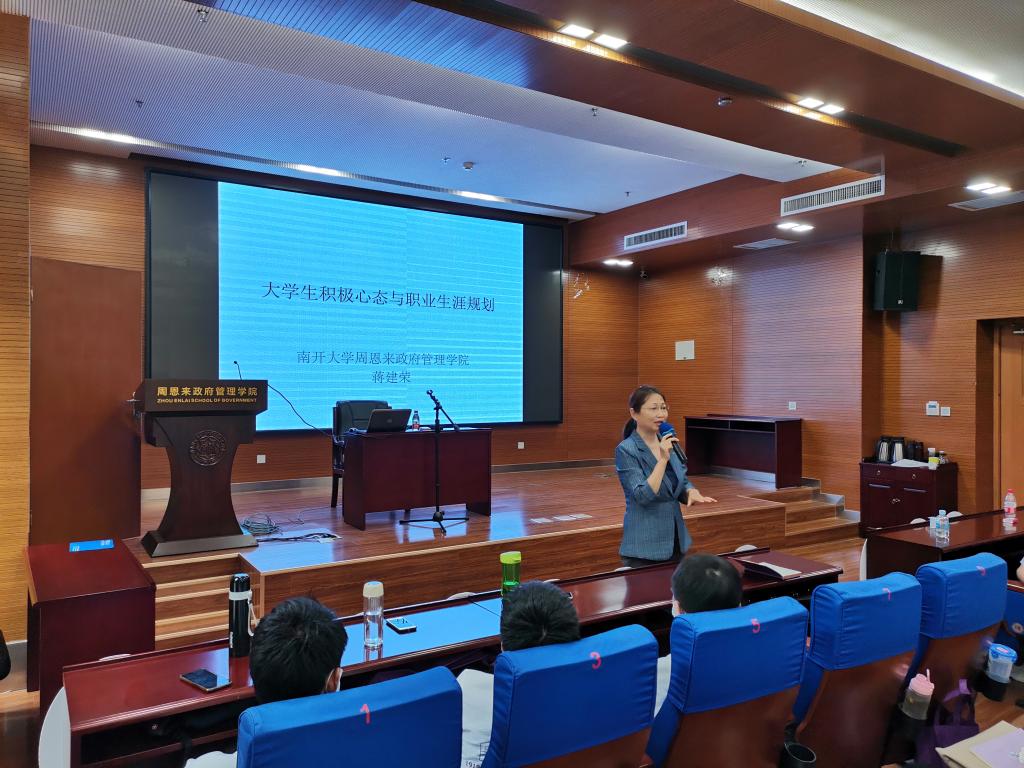 蒋建荣在心理健康及职业生涯规划讲座中从老员工积极心态树立、内外职业发展和自我管理等方面为研究生新生可能出现的心理和职业发展困扰给出了宝贵的建议。