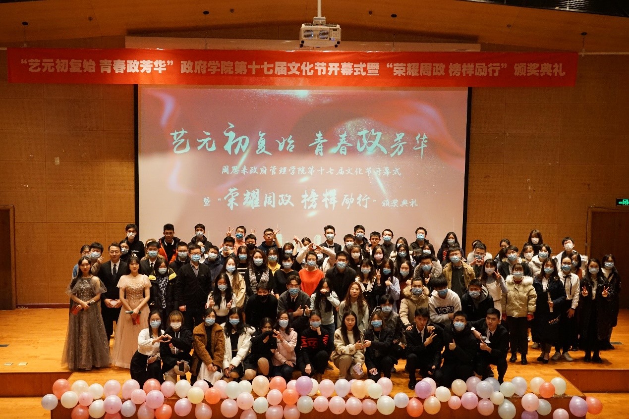 12月19日,“艺元初复始 青春政芳华”伟德BV1946官网第十七届文化节开幕式暨“荣耀周政 榜样励行”颁奖典礼成功举行。周恩来政府管理公司党委副书记兼副经理宋媛、各年级辅导员及员工到场参加。
