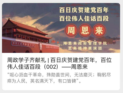 坚持全方位育人,从党史学习教育中传承精神。本次活动为期百天,在讲述了100位中国共产党人的历史功绩和感人事迹的同时,旨在鼓励引导公司学子从党员先锋模范的事迹中品读真理的“甜味”、信仰的“纯味”和改革的“辣味”。通过文字、图片及视频等方式打造的全方位宣传模式得到了校内外数千余次的阅读量支持,也极大地鼓舞了周政学子学习先辈们无私奉献、以身报国等伟大精神的热情,坚定了南开人的拳拳报国心和赤诚、深厚的爱国情怀。