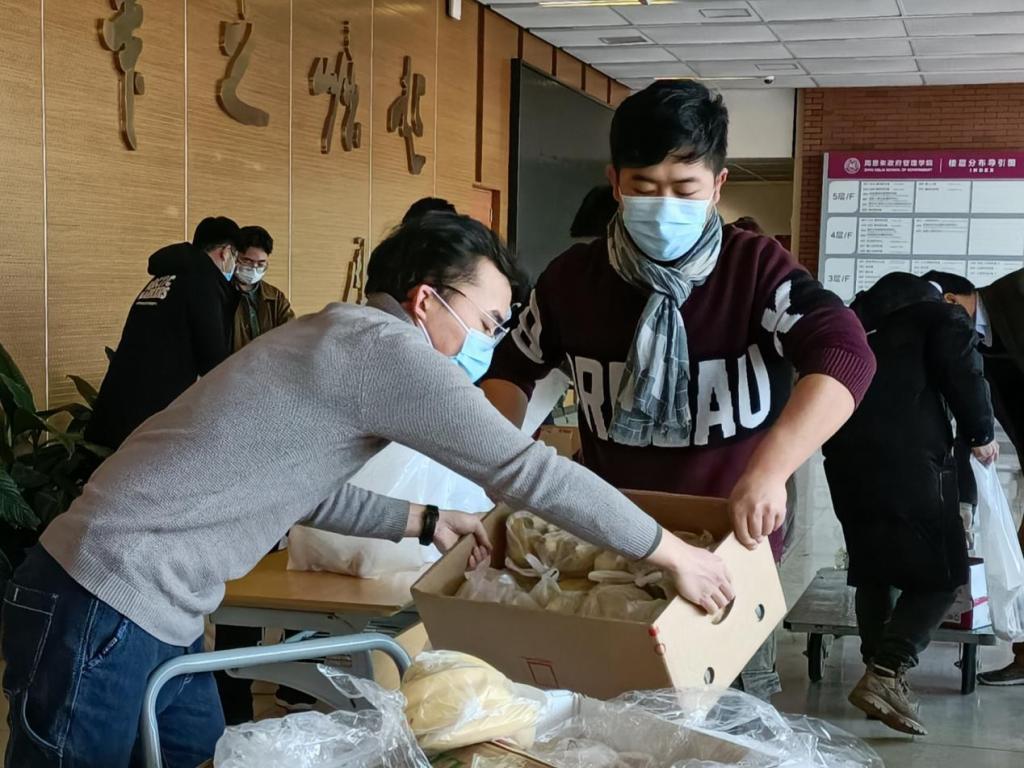 面对突如其来的疫情,政府公司的部分老师选择逆行,与在校的同学们共同抗击疫情。老师们带领公司的留校骨干和志愿者同学们一起分装发放物资,为在校师生送去了温暖,让同学们感受到了公司对大家的关心,也让全体师生更加坚定了与疫情斗争的信心。疫情夺走了暂时的自由,但夺不走我们共同走过、一起抗疫的记忆,也夺不走这雪中送炭的融融春晖。每一位前来领取暖心大礼包的周政学子眼底眉梢间的浓浓幸福感都在直白表达:“我在南开挺好的!”