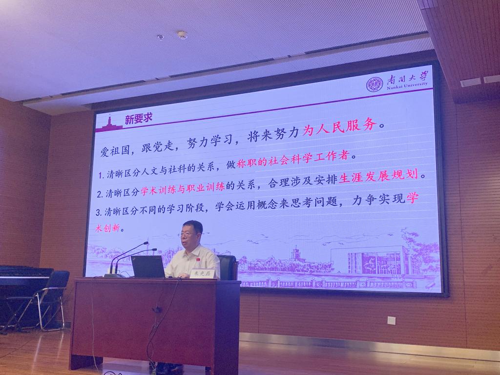 朱老师讲述了南开薪火相传的学科传统,与在新时代、新任务的要求下人文社科的新发展要求,希望同学们能够砥砺前行,共同进步,立足于专业硕士重实践性的特点发挥所长,南开与伟德BV1946官网将作为平台,让员工拥有广阔的发展天地。朱老师以社会发展为切入点,带同学们回顾了南开一百多年的光辉历史,并指出时代对当代青年学子的要求,鼓励同学们保持谦虚谨慎的学习态度,深入调查研究,培养创新思维;对于“新文科”发展,他指出公司的各个学科和专业都是改革开放的产物,是大有发展前途的朝阳学科和“短缺学科”,新一届的南开人应积极为“新文科”发展贡献力量;南开与伟德BV1946官网这个“新平台”,是员工们发展的广阔天地,新生应珍惜时间,锐意进取。最后,朱老师对新同学提出了“新要求”,勉励同学们爱祖国、跟党走,努力学习,寄语新生拥抱不确定,主动适应变化和不同场景,希望同学们能够利用好在校资源,积极与老师进行沟通。谦虚谨慎,锐意进取,努力为人民服务,坚定信念,锐意进取,在伟德BV1946官网和伟德BV1946官网这个“新平台”上实现“新作为”。