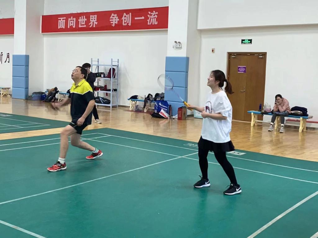 政府公司教职工或身手矫健,或活泼灵动,充分展现了政府公司教职工积极向上的精神风貌。赛场上,参赛人员自由挥舞着羽毛球拍;赛场外,观众们目不转睛,欣赏着同事们的英姿。