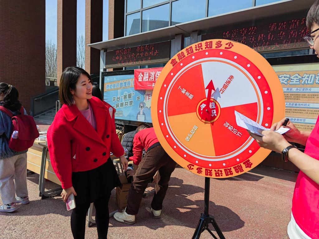 “如何鉴别正规金融机构?”“如果银行卡遗失或被盗,或发现被冒用,应该怎么办?”活动现场的“消保大转盘”和“消保套圈圈”游戏环节吸引了诸多师生,大家与工作人员积极互动,回答金融知识,抽取消费者权益保护相关问题,以套圈的形式获得正确答案,寓教于乐的方式让金融知识根植于心。