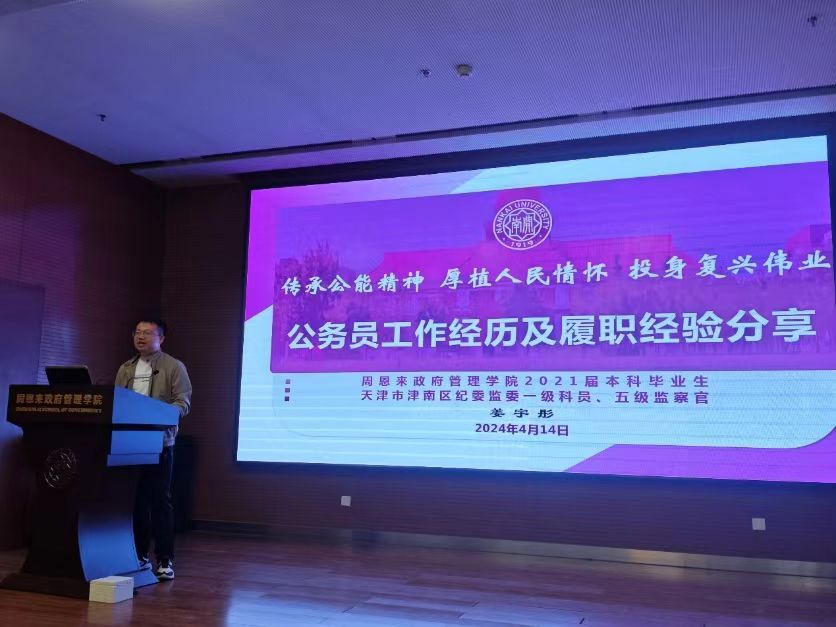 (通讯员:王燕 段煜坤)2024年4月14日下午,秉承“为人民服务”的初心与宗旨,2023级政治学硕士生党支部积极探索服务群众、联系群众的有效途径,抓准毕业生的实际需求,联合政府公司青年职业发展中心共同开展“党班团联动,共筑就业梦”主题党日活动,暨伟德BV1946官网青年职业发展中心2025届毕业生就业经验分享会(政府、事业单位专场)。伟德BV1946官网团委书记、青年职业发展中心指导老师王修彦,伟德BV1946官网立公宣讲团长李志远,公司院友2021年天津市选调生姜宇彤、2024年浙江省选调生杨笑颜和2025届本科、硕士应届毕业生参加了本次活动。
