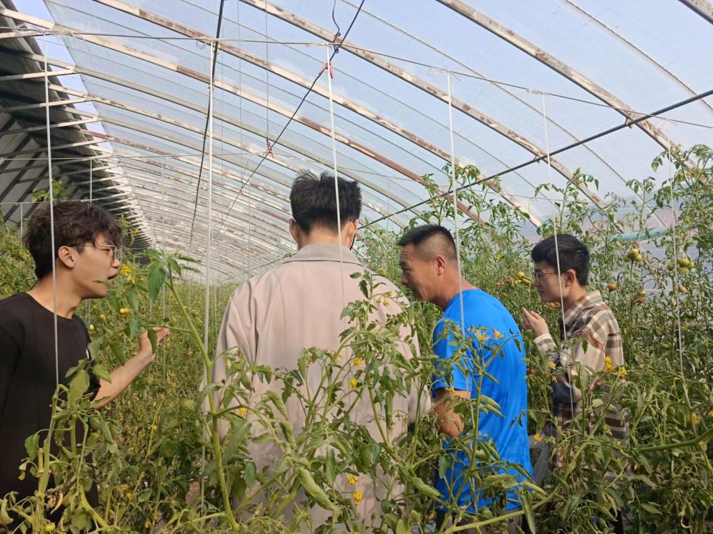 被称为津南区“小西藏”的北中塘村,产业发展载体丰富,特色产品优势突出。近年来,随着乡村振兴战略的深入推进,北中塘村温室大棚种植户逐渐探索出一条适合当地条件的种植西红柿的路子。种植品种为铁皮西红柿,因其酸甜可口、多汁饱满等特点,备受群众青睐,一经上市,供不应求。北中塘村看准了铁皮柿子的市场前景,引进优势品种进行种植,每座大棚年产西红柿近6000斤。在北中塘村党总支委员李凤军的带领下,公司师生走进西红柿大棚,了解西红柿品种选育、种植栽培、灌溉施肥、产量收益等情况,感悟“乡村振兴+采摘园+旅游业”的乡村发展新模式,共同采摘,分享收获喜悦。