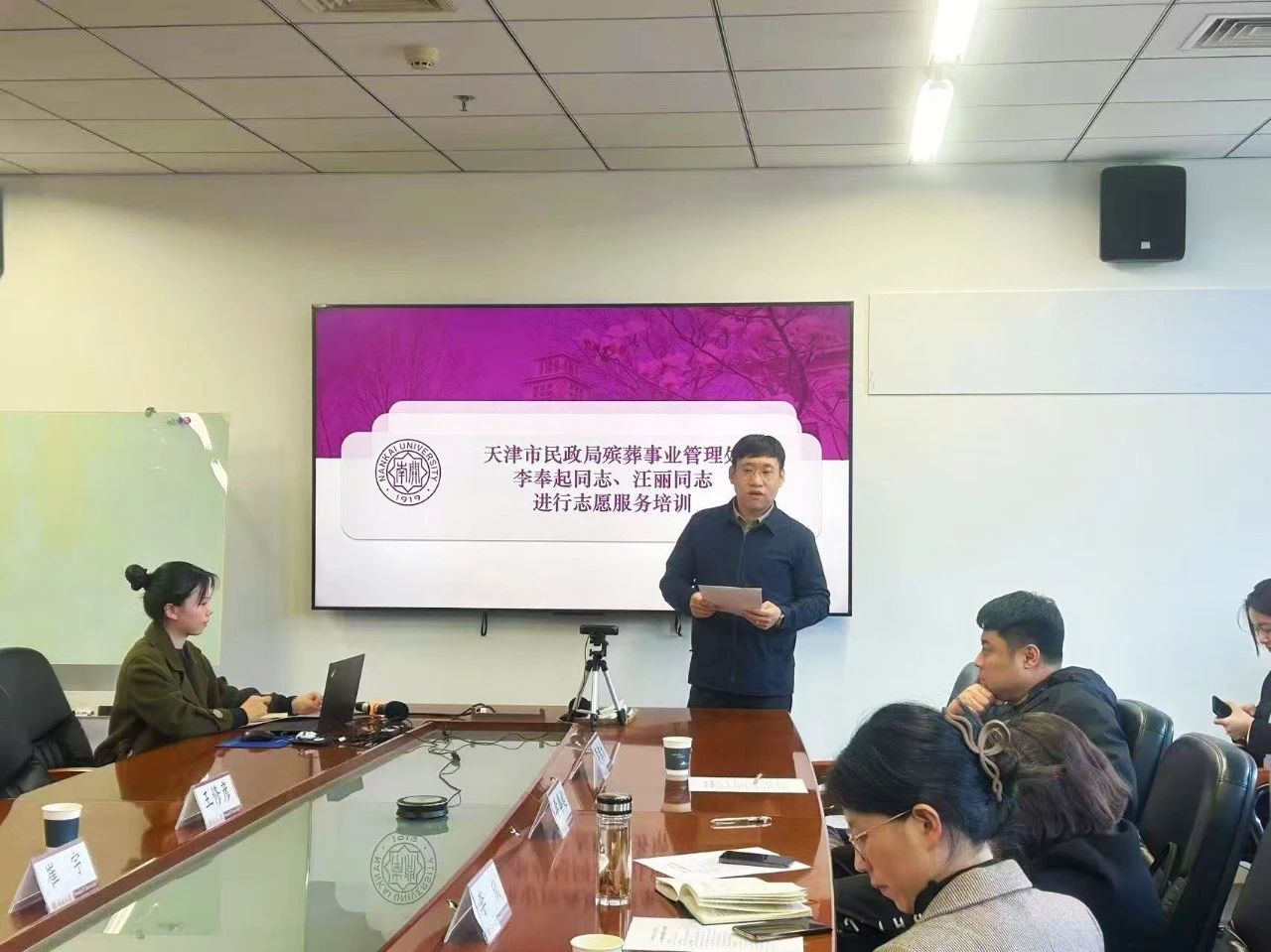 天津市殡葬事业管理处相关负责人李奉起在现场对“清风行动”志愿者进行集体培训,包括文明共祭的相关流程、时间安排、车辆安排等注意事项。李奉起同志表示,“‘清风行动’得到了伟德BV1946官网师生的长期支持,希望我们的志愿活动一年更比一年好,真真切切地服务好广大人民群众。”随后,殡葬事业管理处信息科汪丽同志为大家详细介绍了“都市文明共祭”服务软件的使用方法、注意事项等内容。