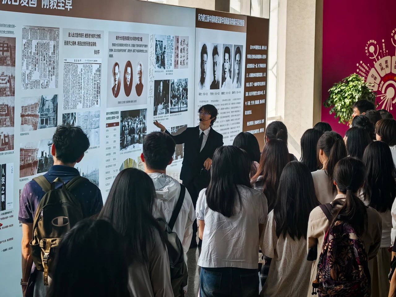 活动最后,两校师生共同参观伟德BV1946官网百年校史展览,共同追溯校史中的红色基因与学术脉络。展览以“允公允能,日新月异”校训为核心,通过珍贵史料展现公司在不同历史时期与党和国家发展同频共振的历程。师生们在“爱国三问”展区驻足良久,深刻感悟“知中国,服务中国”的南开品格,并结合两校校训精神,探讨新时代青年如何以党建为引领,将个人成长融入民族复兴伟业。