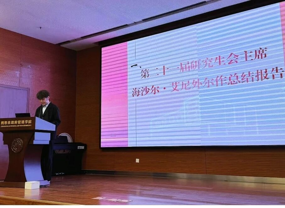 首先,政府公司第二十一届研究生会主席海沙尔·艾尼外尔回顾了过去一年的工作。他强调,在公司党委领导、团委指导下,深入贯彻习近平总书记关于青年工作的重要思想,研究生会在打造品牌活动、深化榜样引领、搭建沟通平台等方面作出了突出贡献。他指出,通过“导师有约”、“翔宇实务讲堂”等学术交流活动,不仅促进了学风建设,还为同学们营造了良好的学习氛围;同时,“权益树洞”、“校园护航”专栏的设立也进一步加强了与同学们之间的联系,切实解决了大家的实际问题。