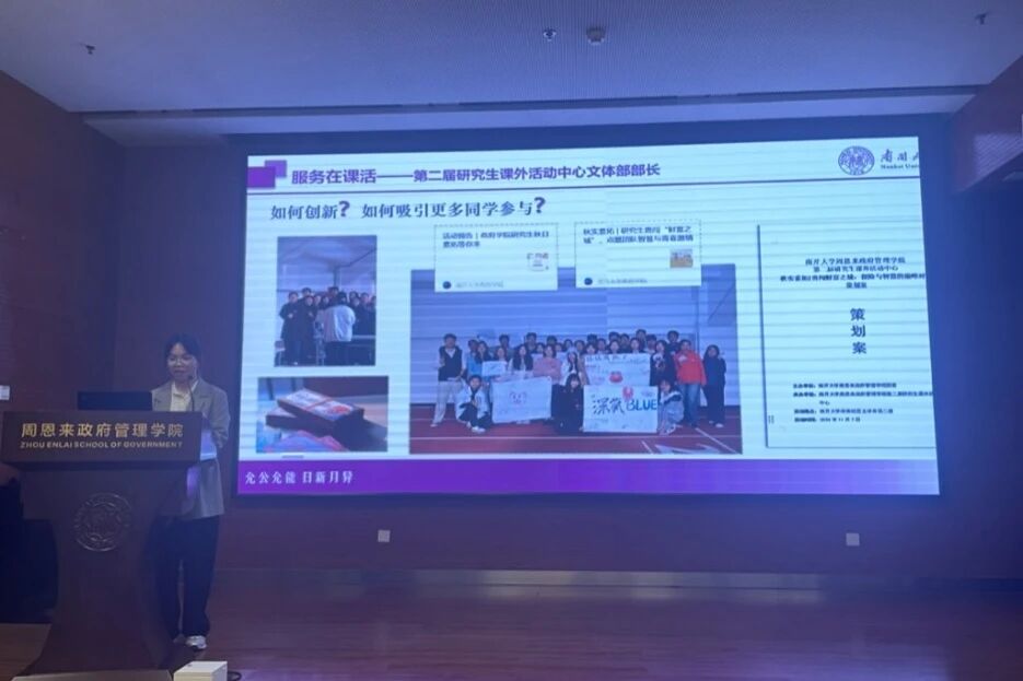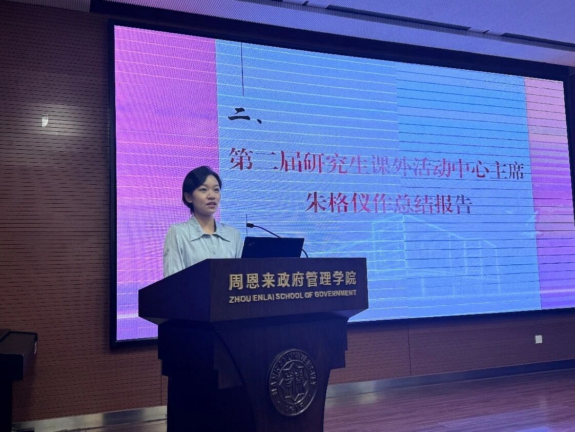 随后,第二届研究生课外活动中心主席朱格仪向大会工作报告,展示了课外活动中心在过去一年中的成长轨迹。研究生课外活动中心始终坚持以习近平新时代中国特色社会主义思想为指导,在公司党委团委的正确领导下,从健全内部管理到创新活动品牌,再到服务广老员工,课外活动中心通过一系列丰富多彩的文体活动,如“音符跳动,在音乐疗愈中感受心灵律动”心理团辅活动、“翔宇聚韵,筝绘南开”风筝制作活动等,既关注到了同学们的心理健康,又丰富了校园文化生活。