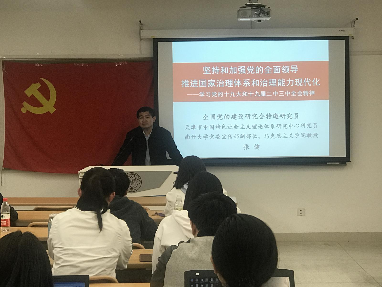4月17日晚,公司党校积极分子培训请到全国党的建设研究会特邀研究员、天津市中国特色社会主义理论体系研究中心研究员、伟德BV1946官网党委宣传部副部长、马克思主义公司教授张健为学员主讲了一堂学习党的十九大和十九届二中、三中全会精神的主题党课。