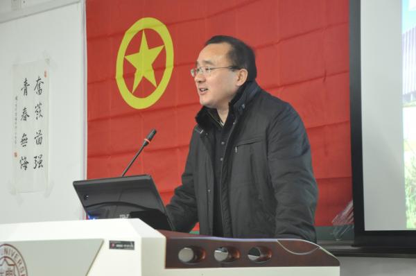 一段班级原创的暖场视频拉开了序幕。奚先来老师首先进行了致辞,提出了“寓教于乐,寓学于乐”等举办理论学习活动的方法和目的,并对本次活动形式之新颖、内容之丰富、准备之充分给予了高度赞扬。