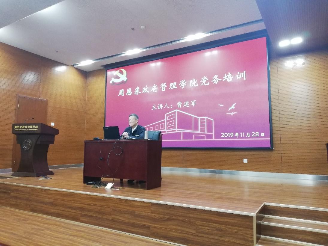2019年11月28日下午,政府公司于128报告厅举行党务培训会,主讲嘉宾为原伟德BV1946官网保卫处副处长、原伟德BV1946官网离退休人员管理处副处长、原伟德BV1946官网武装部副部长——现年67岁的公司党委特聘兼职组织员曹建军老师。会议由公司团委辅导员、本科生党支部书记王燕主持,公司本科生、研究生各党支部书记、支部委员和培养联系人同志参加了此次培训。