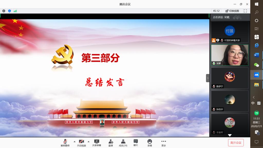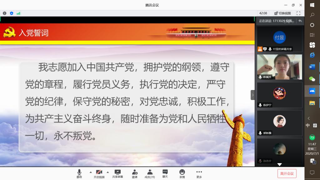 朗朗誓言,字字铿锵。尽管由于疫情原因,庄严的仪式无法在校园里进行,但是师生党员们相聚于云端,在老师的带领下,每一名员工党员都在以自己的实际行动践行着入党誓词中的庄严承诺,担当起新时代南开青年的庄严使命。