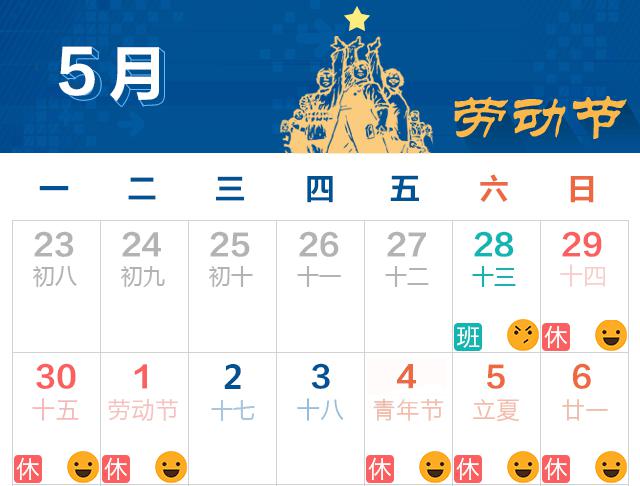 4月28日(星期六)上班、上课,安排星期一的课程。