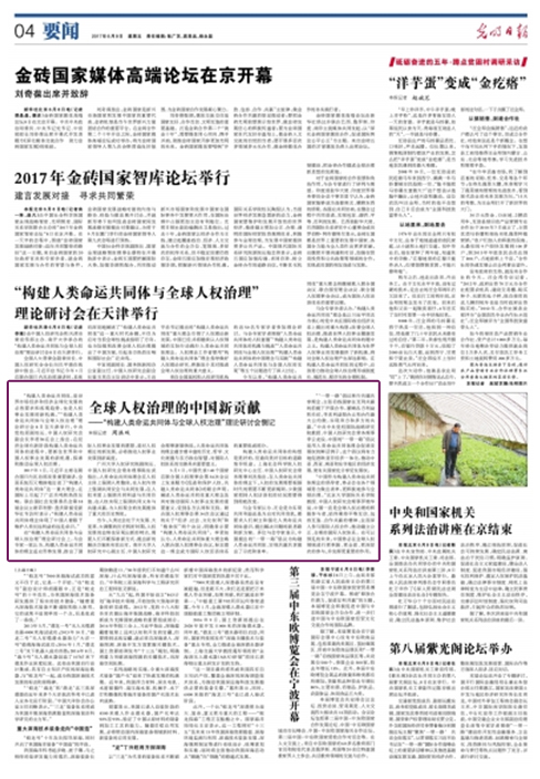 在“构建人类命运共同体与全球人权治理”理论研讨会上,与会专家一致认为,构建人类命运共同体的理念适应形势发展,指出了国际人权事业发展的愿景,是对人权理论的新发展,必将推动人权事业发展到新高度。