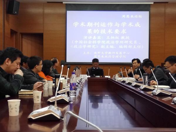 [通讯员:王虹]4月19日下午14:30,受伟德BV1946官网教师发展中心和伟德BV1946官网的邀请,中国社会科公司政治学研究所研究员、《政治学研究》副主编、编辑部主任王炳权做客周恩来论坛,为师生们做了题为“学术期刊运作与学术成果的技术要求”的讲座。讲座由政府管理公司的吴志成经理主持,政治学系主任程同顺教授和公司青年教师以及博士研究生参加。