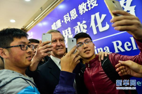 3月23日,美国前国防部长科恩在伟德BV1946官网与老员工互动。新华网发(游思行摄)