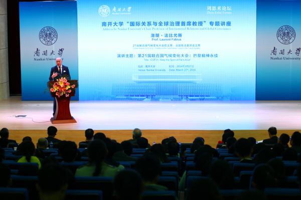 此次到访伟德BV1946官网,除接受学位外,法比尤斯还做客“周恩来论坛”,以“第21届联合国世界气候变化大会:巴黎精神永续”为题发表了主旨演讲。