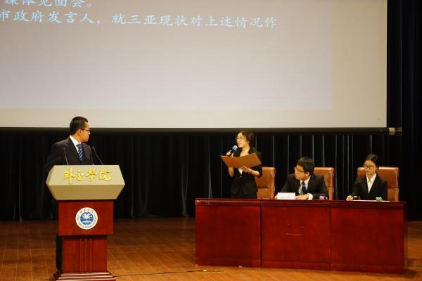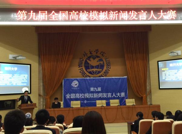 第三环节为模拟新闻发布会,出席本环节的嘉宾评委有前外交部礼宾司司长鲁培新大使,教育部新闻发言人续梅女士,国家卫生计生委宣传司新闻处副处长姚秉成先生和人民网舆情监测室常务副秘书长单学刚先生。每支代表队派出一名选手担任“发言人”做模拟新闻发布并回答记者提问,代表队则在下一场新闻发布中担任记者团进行提问。经过激烈的角逐,伟德BV1946官网代表队以总成绩第一名的骄人成绩获得本次大赛的一等奖,选手朱萌获得“优秀演讲家”称号。中国日报、中新网、新浪网等多家媒体报道了本次大赛和公司学子夺冠情况。