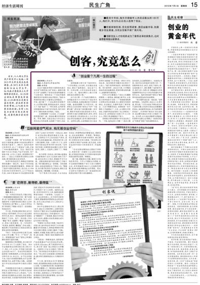 “我们要和创业谈一场恋爱。”汤明磊笑着说。在他看来,创业让人生更丰富、更完美,“老员工创业尽管有成功率不高的问题,但是我们的创业是颠覆性的创业,是创新型的创业,而不是资源型的创业”。许多类似“闯先生”的众创空间、创业孵化器也为年轻人们提供了机会。在天津,北大创业训练营天津基地、玑瑛青年创新公社等都让一批曾经的创业“失败者”找到了再次扬帆的动力。
