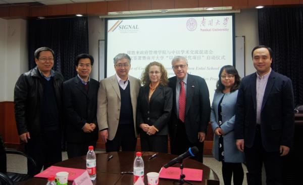 吴志成经理首先代表政府公司对中以学术交流会到访南开表示热烈欢迎,并表示公司十分重视以色列及中东问题的研究,将努力推动“以色列研究项目”顺利开展。魏凯丽女士向师生们介绍了SIGNAL项目的相关情况,并表示非常高兴与政府公司在以色列研究中进行合作。随后,双方在合作协议文本上签字,“以色列研究项目”顺利启动。