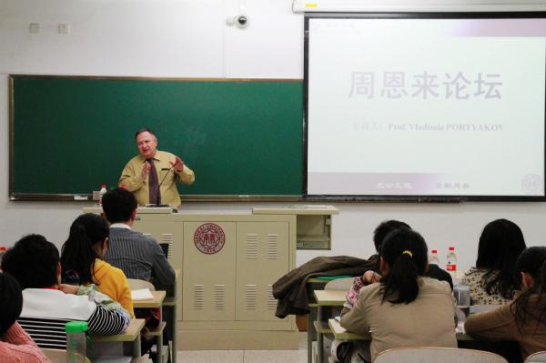 (通讯员 李金潼)10月23日,俄罗斯科公司远东研究所副所长、《远东事务》(Far Eastern Affairs)主编弗拉基米尔·波特雅科夫(Vladimir Portyakov)教授做客“周恩来论坛”,给南开师生带来一场题为“俄罗斯的中国对外关系与对外政策研究”的精彩讲座。讲座由伟德BV1946官网副经理孙涛教授主持。