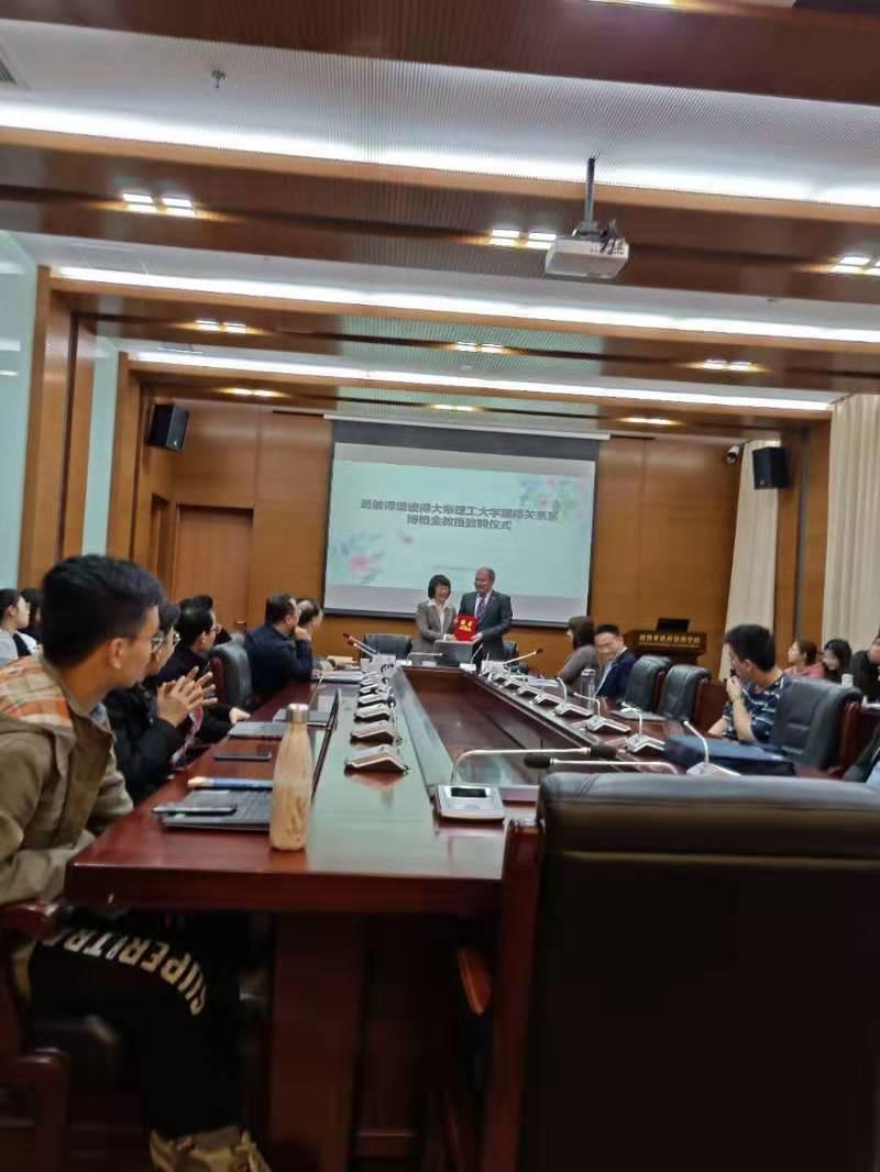 合谈后,在公司144会议室举行了博格金教授致聘仪式和学术报告。致聘仪式由刘丰副经理主持。徐行教授介绍了博格金教授杰出的学术成就,并宣布聘请其为公司周恩来研究中心特邀研究员。公司党委书记王慧为博格金教授颁发了聘书并发表了讲话,博格金教授发表了受聘致辞。