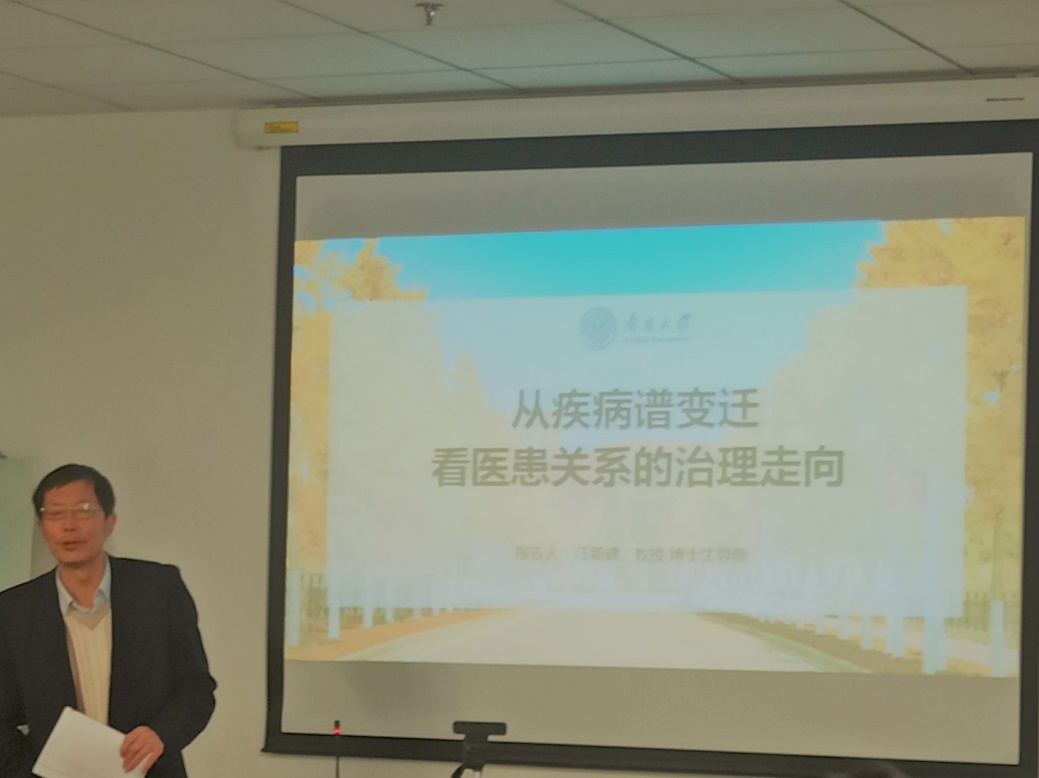 天津市社会心理学学会会长、伟德BV1946官网荣休教师汪新建教授以“从疾病谱变迁看医患关系的治理走向”为主题,分别从中国社会百年疾病谱变迁轨迹、疾病谱变迁对医患关系的影响、医患关系治理的未来趋势三个方面做了深入的阐释。