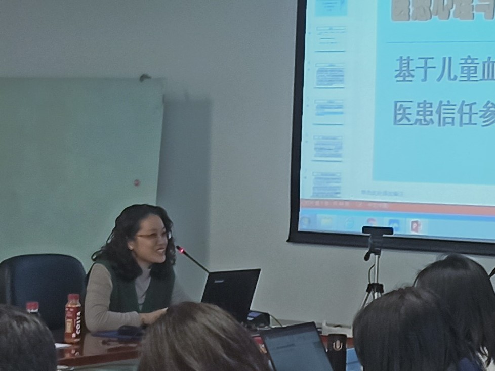 天津商业大学法公司王丛老师做了“基于儿童血液病中心的医患信任参与观察研究”的主旨发言,讲解了多个儿童血液病案例,使切身感受与前人的学术成果相交流、融汇,并认为“有必要跳出‘权力之眼’与‘病患本位’来看待医患关系”。