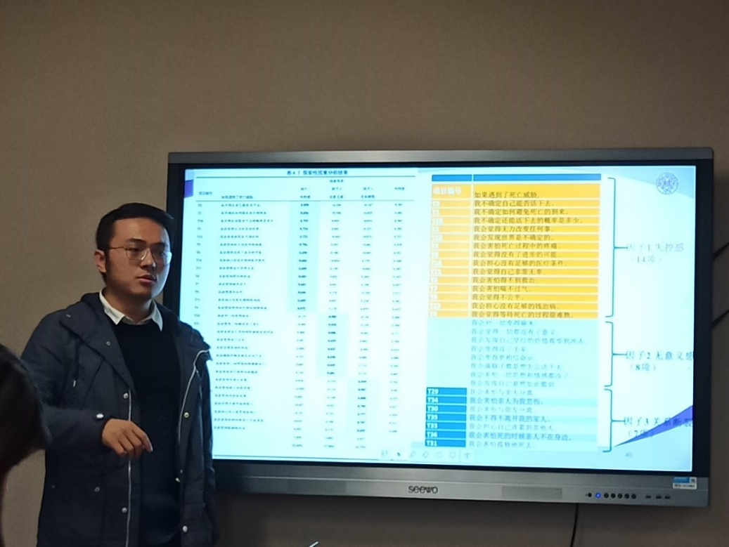 伟德BV1946官网博士生孟祥寒探究了新冠疫情下中国人面对死亡威胁时的心理机制,发现中国人面临的死亡威胁体现在控制感丧失、关系断裂以及意义危机三个方面,权力感、依恋焦虑和生命意义感三者与死亡焦虑均通过无法忍受不确定性中介,不确定性比死亡威胁更易引发现实中的世界观防御,并且编制了中国版的“死亡威胁量表”,测量个体在面对死亡威胁时心理不同维度受影响的程度。