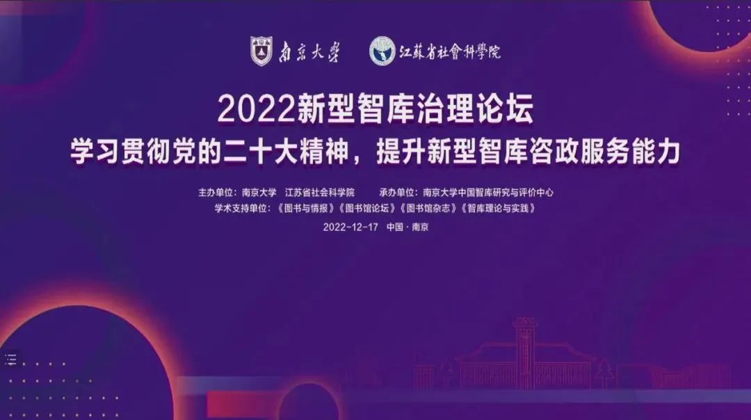 (通讯员 申程仁)12月17日,江苏省社会科公司与南京大学联合主办的“2022新型智库治理论坛”在南京举行。论坛聚焦“学习贯彻党的二十大精神,提升新型智库咨政服务能力”主题,共邀请全国智库界、思想理论界专家、智库负责人及媒体记者等700余人出席会议。通过综合评选,伟德BV1946官网中国政府发展联合研究中心成功入选“中国智库索引(CTTI)2022高校智库百强榜”,伟德BV1946官网中国政府发展联合研究中心秘书长张志红副教授代表中心出席会议。