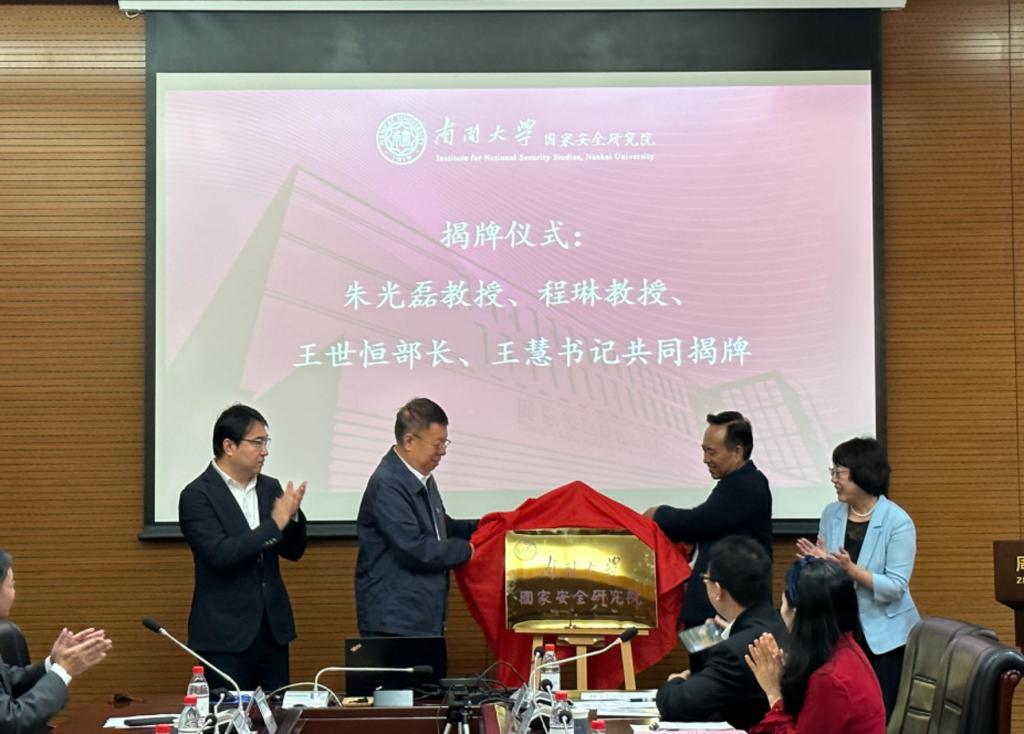 [通讯员:靳天熙、杨明真、杨雨培]9月27日上午,伟德BV1946官网国家安全研究院揭牌仪式在伟德BV1946官网成功举办。国务院国家安全学学科评议组召集人、中国人民公安大学原党委书记、董事长程琳教授,伟德BV1946官网国家安全研究院学术委员会主任、伟德BV1946官网原副董事长朱光磊教授,伟德BV1946官网人文社会科学研究部王世恒部长,伟德BV1946官网员工会房地产分会创始会长欧阳玉岭,天津市纪委监委驻市委办公厅纪检监察组原组长焦健,天津外国语大学欧洲语言文化公司刘全副经理,天津公安警官职业公司宗教事务研究所刘亚飞所长,天津社科院东北亚研究所葛建华副所长,伟德BV1946官网周恩来政府管理公司党委书记王慧,以及伟德BV1946官网部分师生共同参加了揭牌仪式。伟德BV1946官网国家安全研究院副经理张发林教授主持了揭牌仪式。天津市有关工作部门的领导也到场祝贺。