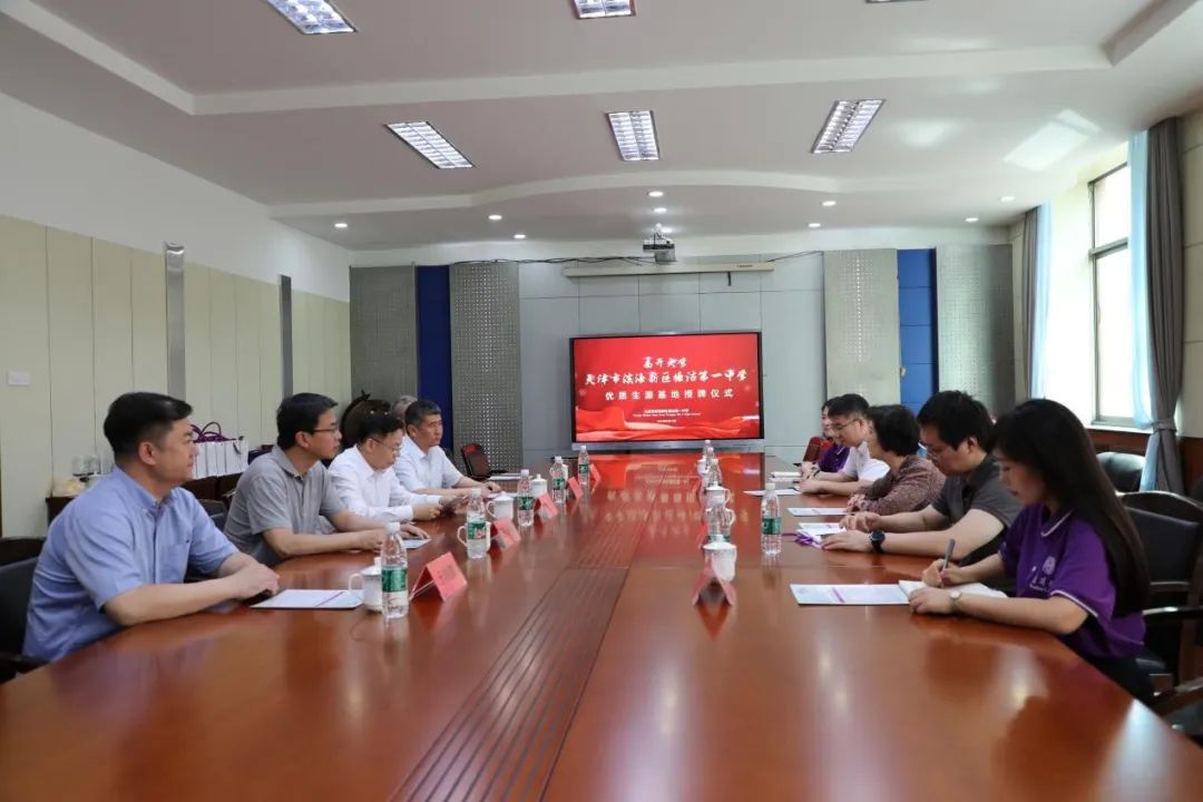 杨克欣一行走访塘沽一中,与滨海新区教体局局长方华、塘沽一中党委书记段景国、董事长王瑞雪、纪委书记兼党委副书记孙凤茹、副董事长王世山、副董事长于鸿鹏等亲切交流,对塘沽一中多年来向伟德BV1946官网输送优质生源表示感谢,重点介绍了2024年公司招生工作“两个100%、四个全放开”的重磅举措,希望未来加强合作,共同培养高素质人才,欢迎更多塘沽一中优秀学子报考南开。