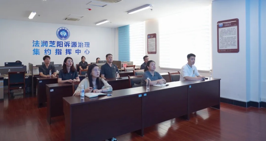 随后,课题组赴烟台市龙口市调研“诉源治理”的工作经验开展调研,实地参观了龙口法院数据集约处理中心、一站式诉讼服务体系建设、“法润芝阳”诉源治理驻院工作站、法治展览馆等,交流了“诉源治理”的工作流程、配套资源等。随后,课题组与龙口市诉源治理指挥中心的相关负责人开展座谈调研,就龙口法院在诉源治理方面的有益探索与经验做法进行交流探讨,针对司法力量介入民生诉求解决与部门职责调配这一特色实践经验的运行逻辑、发生机制等开展深入访谈。
