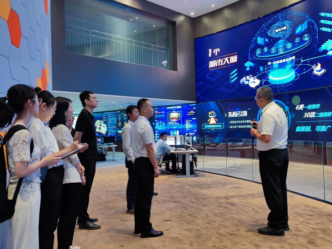 在签约仪式之前,伟德BV1946官网师生首先来到中新生态城的“城市大脑”调研参观,中新天津生态城数据局局长王喆向详细介绍了“城市大脑”的基本组成、3大基础平台和17个智慧模块。中新天津生态城“城市大脑”通过设立指标引领,将资源、职能、能力等全要素集成整合,开发导向产品,最终服务于具体应用。