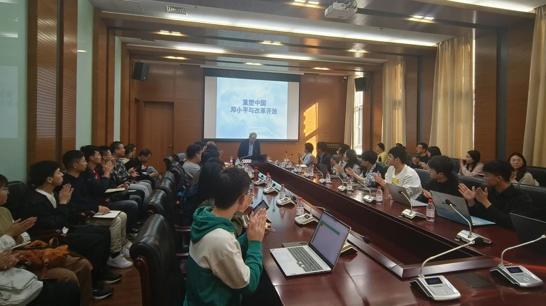周恩来政府管理公司党委书记王慧主持讲座,对章百家研究员的到访表示热烈欢迎和诚挚感谢,希望在座师生珍惜宝贵的学习机会,深刻思考改革开放的伟大历史,深入领悟讲座丰富内涵,促进学术研究与时代精神的紧密结合。