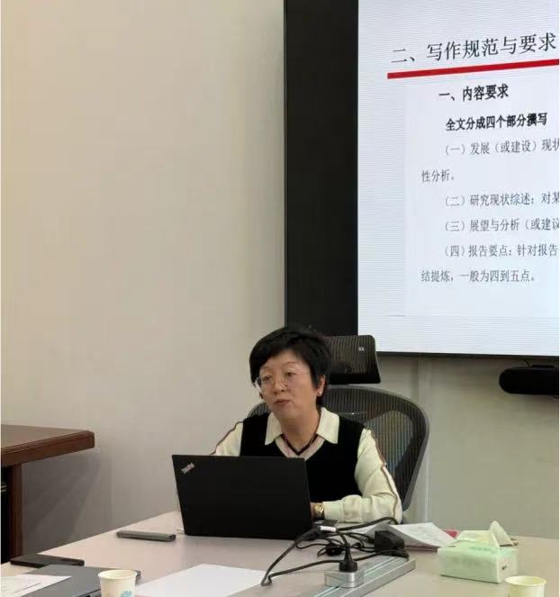 会议第二项,中心研究员王雪丽教授就《中国政府发展研究报告2024》的出版进度和《中国政府发展研究报告2025》组稿编辑工作的具体事宜进行汇报。主要针对报告中的栏目设计与选题、内容方向与质量、写作规范与要求等相关内容进行说明。与会人员就具体内容进行了细致全面的研讨与建议。