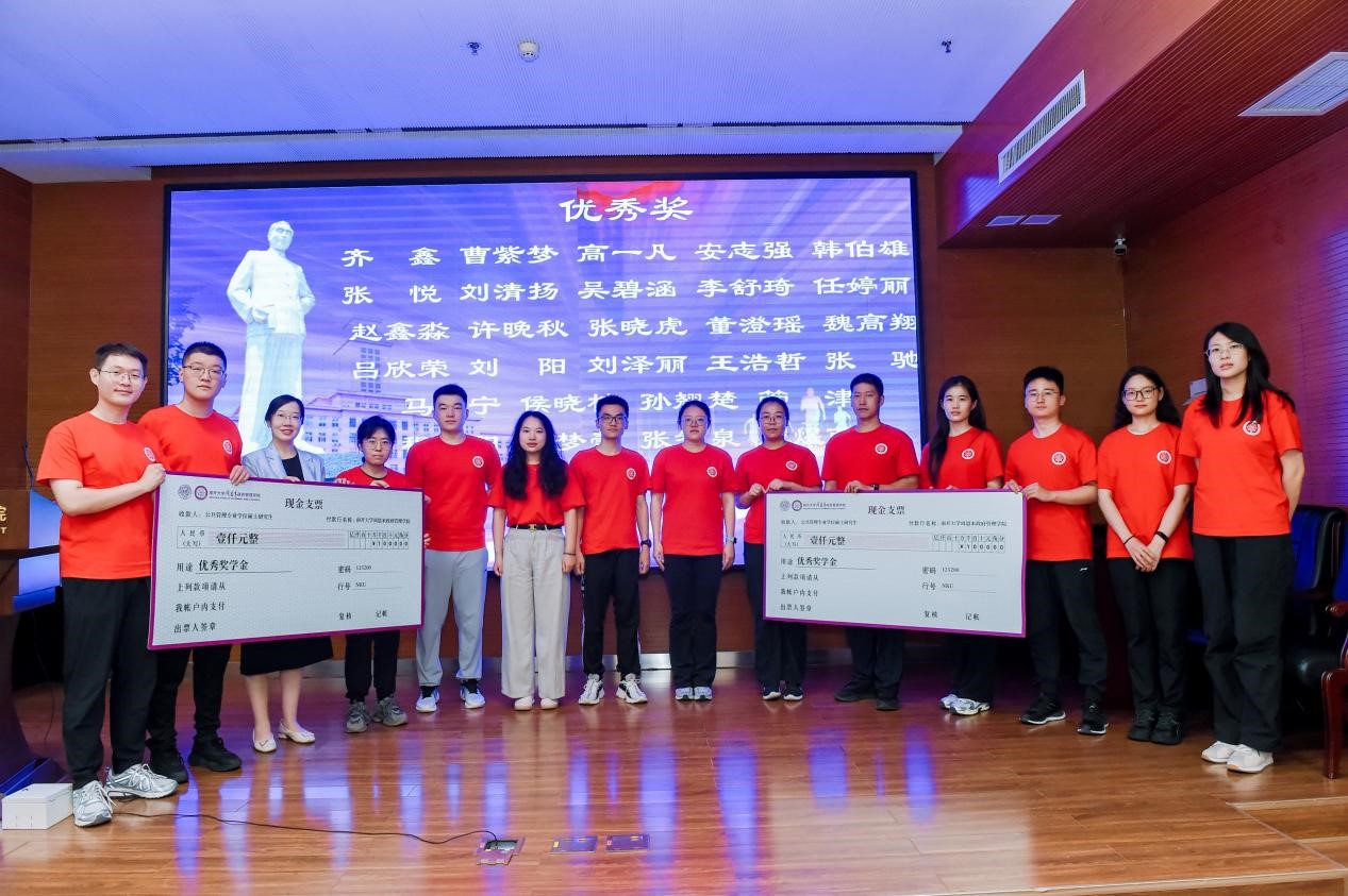 在新生奖学金颁奖仪式上,公司领导为获奖同学颁奖,激励全体新生以榜样为镜,在求学路上奋勇争先。