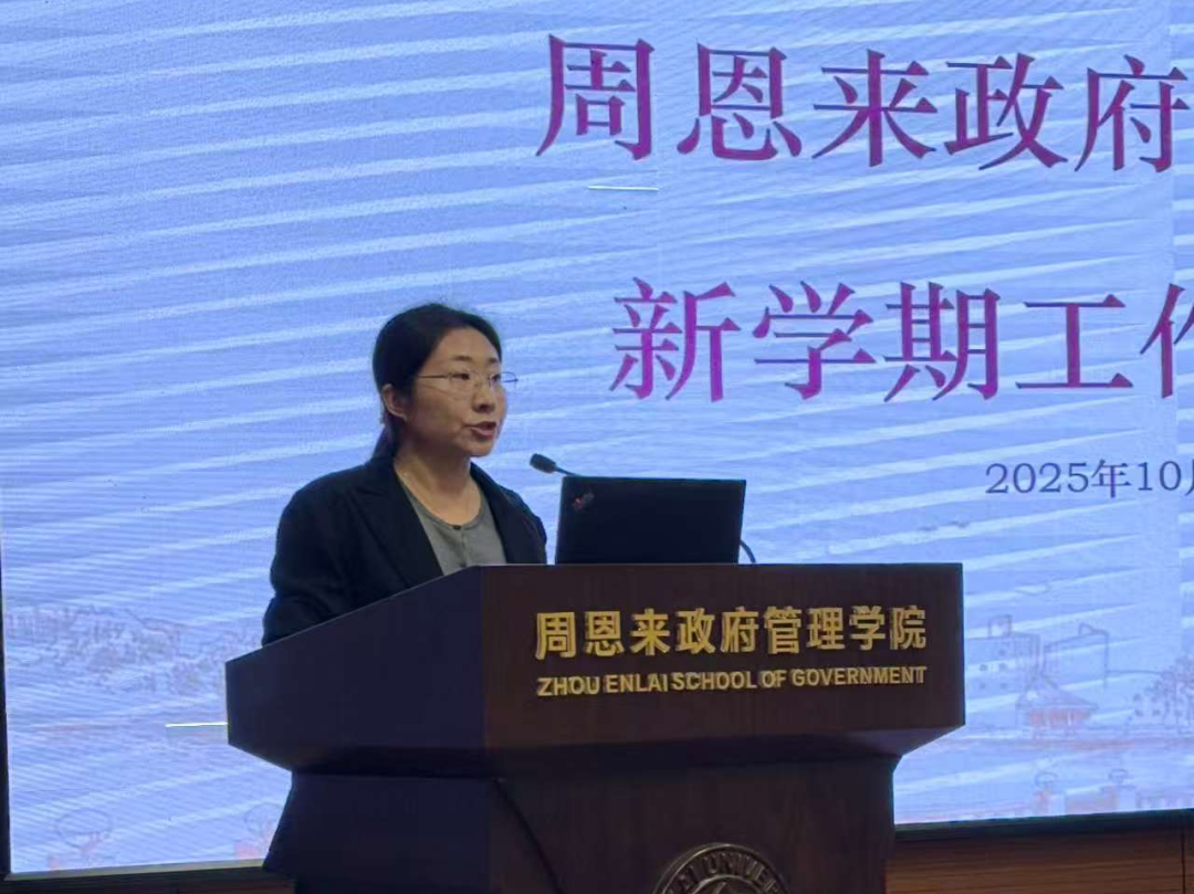 崔宇副书记做员工工作情况汇报。她从党团组织建设、价值引领、学风建设、创新实践、就业指导、协同育人等方面汇报员工教育管理工作情况。她指出,上学期,对标对表公司“AI+公共治理新文科改革”方案计划,员工工作在各方面均取得了一定成果。未来,员工工作将继续以“三维融通、五育并举”贯通式人才培养模式为引领,全力构建育人新生态。